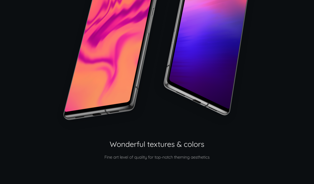 With Arthea this aspect is elevated to a whole new level. Thanks to custom-made designs with precisely picked color palletes your phone or desktop gets vivid, highly aesthetic base on which you can build your dream mobile or desktop setup